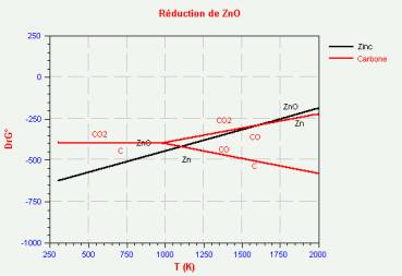 Tracé du diagramme d’Ellingham pour la réduction de l’oxyde de zinc par le carbone. |