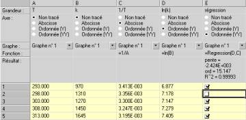 Traitement de données numériques (ou expérimentales) : calcul sur les différentes colonnes de données, tracé de certaines d’entre-elles, régression linéaire sur ces données avec possibilité de ne pas tenir compte de certains points. |