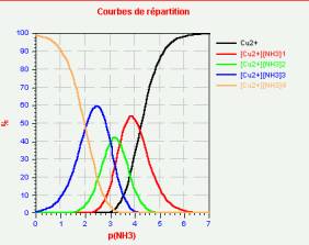 Courbes de répartition des complexes du cuivre et de l’ammoniac en fonction de p(NH3). |