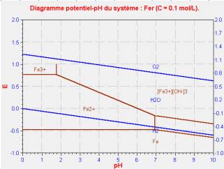 En chimie des solutions : en plus des dosages acido-basiques, de complexation et de précipitation, le tracé d’une courbe E = f(V) pour un dosage rédox est possible (dans la version actuelle l’oxydo-réduction ne peut pas, toutefois, être couplée à complexation ou précipitation par exemple). Sur la courbe de dosage on peut tracer la méthode des tangentes, superposer des courbes (%, dérivée, Gran…)… tracé de diagrammes potentiel-pH (ou pX) avec superposition possibles de systèmes différents et (ou) du diagramme de l’eau ; tracé de l’allure de courbes intensité-potentiel avec (ou non) superposition des différentes intensités sur une même électrode, des couples de l’eau.
