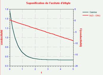 Etude cinétique d’une saponification : tracé de la conductivité en fonction du temps et recherche de l’ordre de la réaction. |