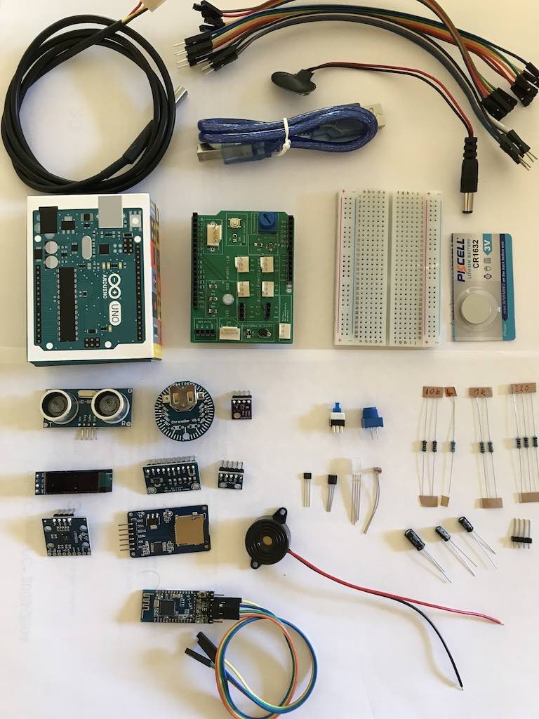 Nous avons conçu un kit pédagogique pour vous apprendre à utiliser un système à base d'Arduino et vous permettre d'atteindre d'atteindre une certaine autonomie dans l'utilisation de la carte et de divers capteurs... bref, devenir "expert" dans l'utilisation d'Arduino. Pour ce faire nous proposons dans ce kit :